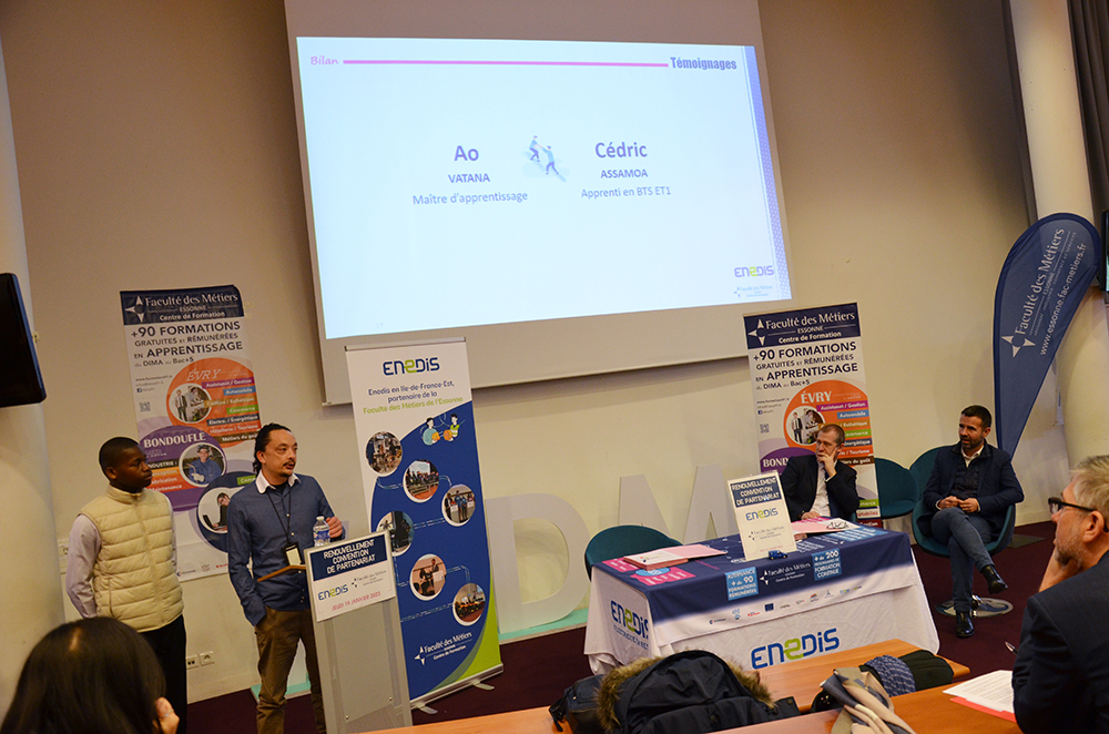 La FDME et Enedis partagent les mêmes principes et les mêmes valeurs, en favorisant l’intégration professionnelle et participant ainsi au développement économique local. Conscientes des enjeux communs que constituent les relations écoles/entreprises, Enedis et la FDME ont convenu de formaliser leur collaboration dès 2017, en officialisant leur partenariat le 25 mars de la même année. Ils s’accordent depuis 6 ans sur l’intérêt réciproque d’une coopération effective et durable, en multipliant les actions sur le terrain ou au sein de nos locaux d’Evry et de Bondoufle.